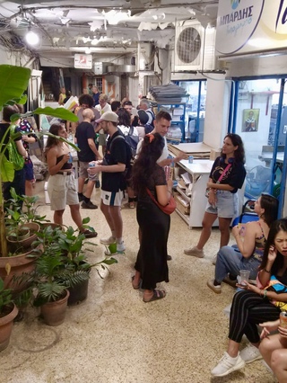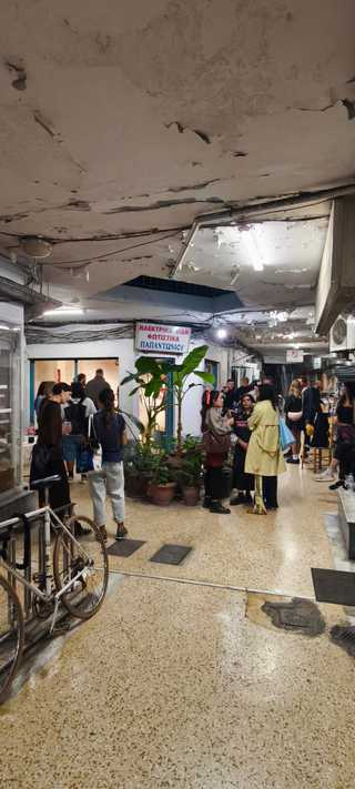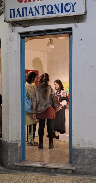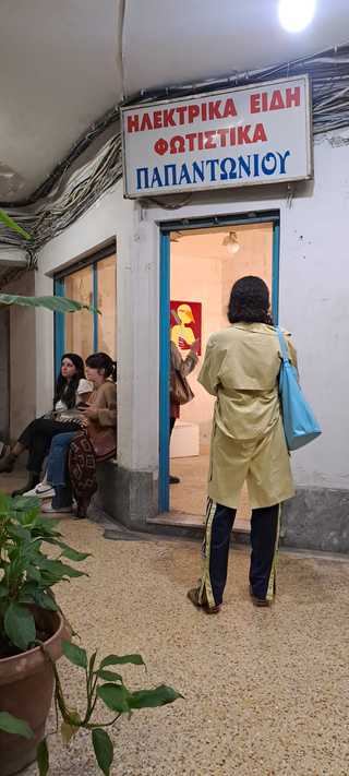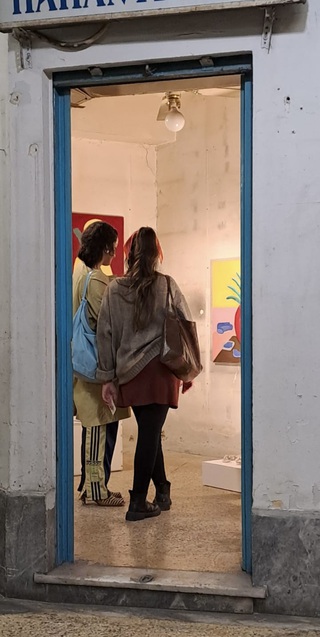 The tiny micro gallery in the Stoa Anatolis (Aristeidou 10-12) in the center of Athens has been hosting exhibitions with artists from Greece, Angola, Cyprus and Germany since summer 2024, aiming to bring the world of this secluded passage, with its quietly whirring printing presses, into touch with contemporary art. It began in June 2024 with a collaboration with the Berlin-based gallery Michael Janssen, which brought the Angolan artist Yonamine to the micro gallery. The current exhibition is "Atrial Verdance", curated by Nikoleta Georgakopoulou and with the artists Cristina Koutsolioutsou and Stella Kaloudi Androulaki.